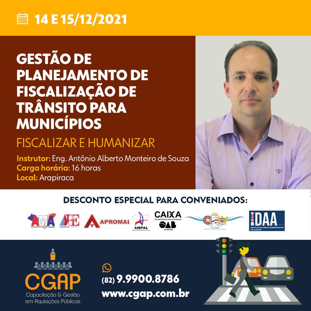 14 E 15 DE DEZEMBRO DE 2021 – GESTÃO DE PLANEJAMENTO DE FISCALIZAÇÃO DE TRÂNSITO PARA MUNICÍPIOS – FISCALIZAR E HUMANIZAR FAÇA AQUI SUA INSCRIÇÃO FAÇA AQUI SUA INSCRIÇÃO Hora de Início 08:00 terça-feira, dezembro 14, 2021 Tempo de conclusão 17:00 quarta-feira, dezembro 15, 2021 Instrutores da CGAP Prof. Paulo Alves Renila Lacerda Bragagnoli Márcio Peixoto Ícaro Werner Fernanda Calixto Gustavo César Leal Farias Rosa Maria Barros Tenório Delano Sobral Rolim Claudia Maria Albuquerque Pereira Ricardo Schneider Rodrigues Welvis de Oliveira Cláudia Pereira Compartilhe: